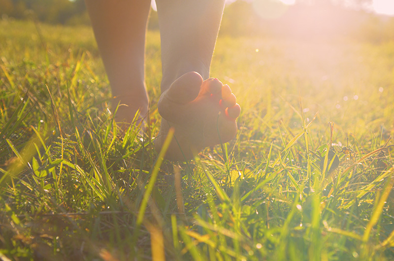 A kiedy tylko możesz i jest to bezpieczne, chodź boso jak najczęściej, najlepiej na łonie natury, na trawie czy wśród liści.
